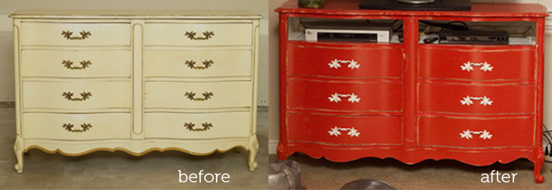 The drawers all had a wooden base underneath them so I just had to pull out the drawers and paint them white to make room for the electronics that need to be out so their sensors can be found by the remote! I also painted the drawer pulls white to match the inside of the shelves.